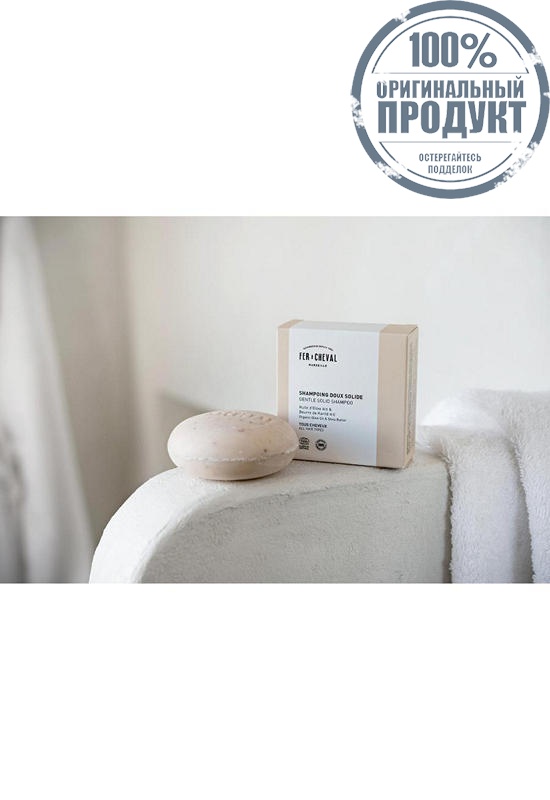 FER A CHEVAL Enriched with oorganic olive oil ans shea butter, the PH neutral formula of Fer à Cheval solid shampoo gently cleanses and cares for the whole family*. A creamy and generous lather, a delicious and natural scent of oat millk, in an eco-designed shampoo. Formula with 100% natural origin ingredients, no preservatives and no silicone for a natural feel.