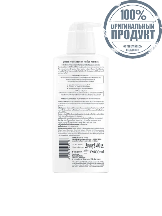 Подробное описание товара на сайте поставщика https://www.central.co.th/en/eucerin-ph5-sensitive-skin-facial-cleanser-400-ml-cds30174061