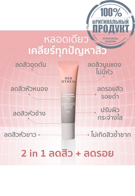 Подробное описание товара на сайте поставщика https://www.central.co.th/en/herhyness-3d-power-acne-clear-gel-12-ml-cds17837903
