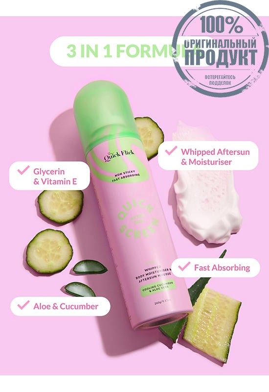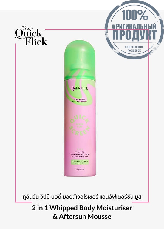 Подробное описание товара на сайте поставщика https://www.central.co.th/en/thequickflick-2in1-whipped-body-moisturiser-aftersun-mousse-260g-mkp1728280